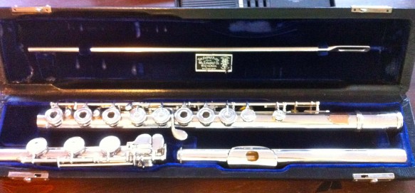 serial #06XX, 2003, 0.016 tubing, A=442 with modern Powell scale, sterling silver including keys, French pointed key arms, drawn tone holes, inline G, B foot […]