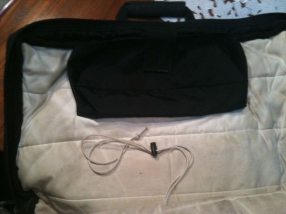 Great Altieri flute bag with shoulder strap and two outside pockets. Interior has a cord to hold case(s) in place, especially when swinging the bag on one ’s shoulder.