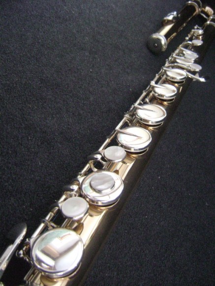 - Gold brass clear lacquered head joint, body and foot joint