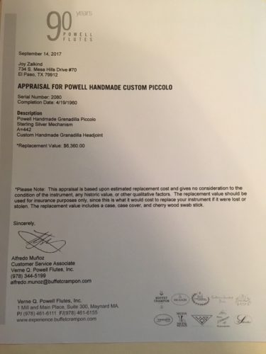 This Powell piccolo was purchased new in 2011 and has been maintained meticulously with never any problems with the mechanism and no cracks. The piccolo […]